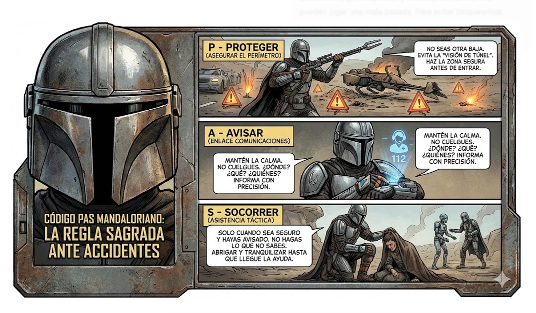 Cuidado con la "Visión de Túnel": Esto pasa mucho. Vemos sangre y nos quedamos hipnotizados mirando a la víctima, olvidando que quizá viene un coche o hay un cable eléctrico suelto. Mirad a vuestro alrededor antes de acercaros.