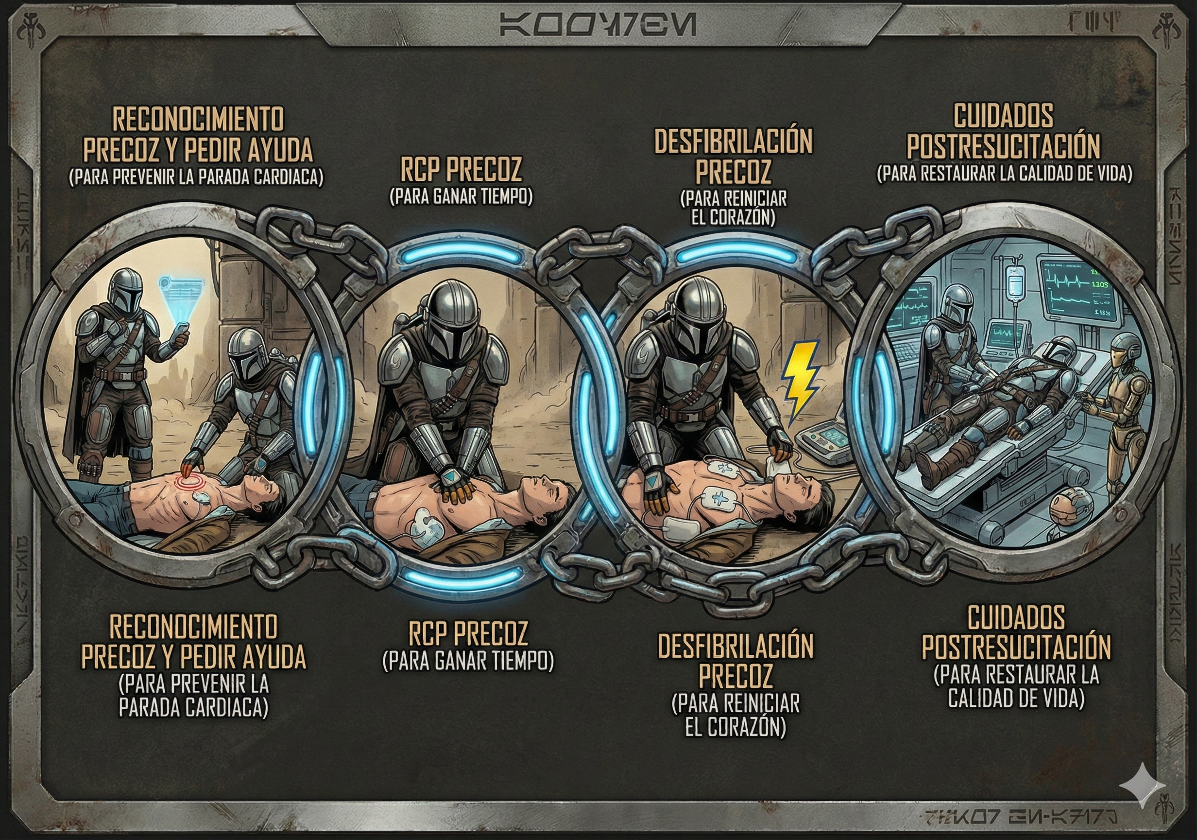 Según las Guías del Consejo Europeo de Resucitación (ERC) 2025, la Cadena de Supervivencia es el concepto que resume las acciones vitales necesarias para tratar una parada cardiaca.
